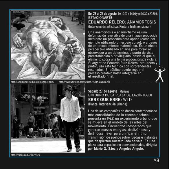 El espacio convertido en escenario. Palabra, música y danza sobre el antiguo ferrocarril. El objeto inanimado cobra vida: la silla de ruedas te invita a bailar. Dentro de EstaciónArte crecen dibujos en tres dimensiones. Un monopatín baila en la calle. Hay un acróbata que desafía la gravedad y el espectador lo ve entre rejas.